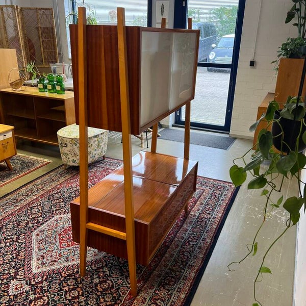 Mooi vintage vrijstaand wandmeubel of roomdivider, Tsjechisch design.