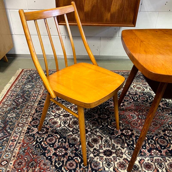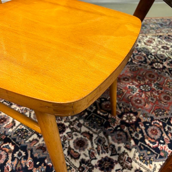 Leuk vintage koffiezitje, bestaande uit een koffietafel / bijzettafel en 2 spijlstoelen.