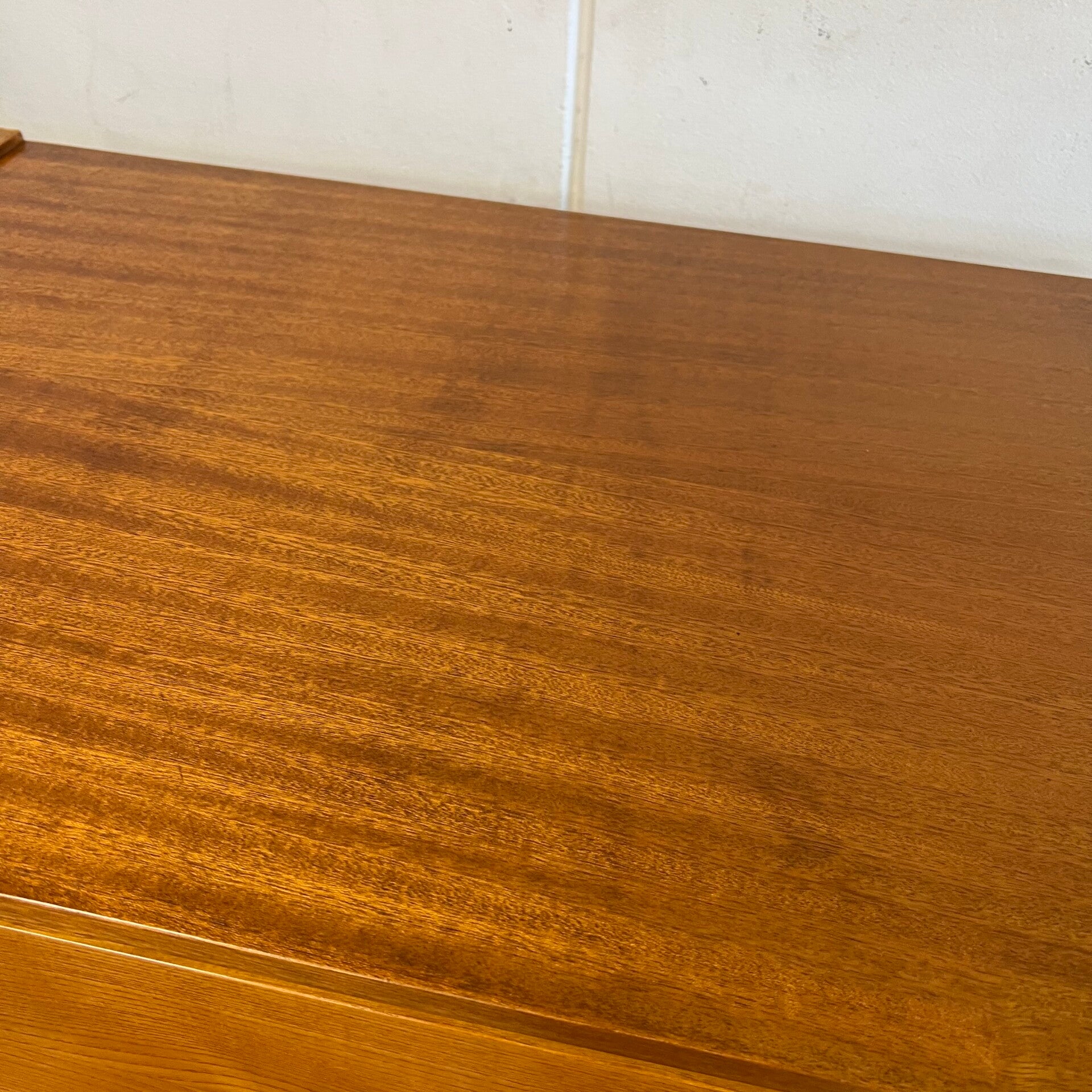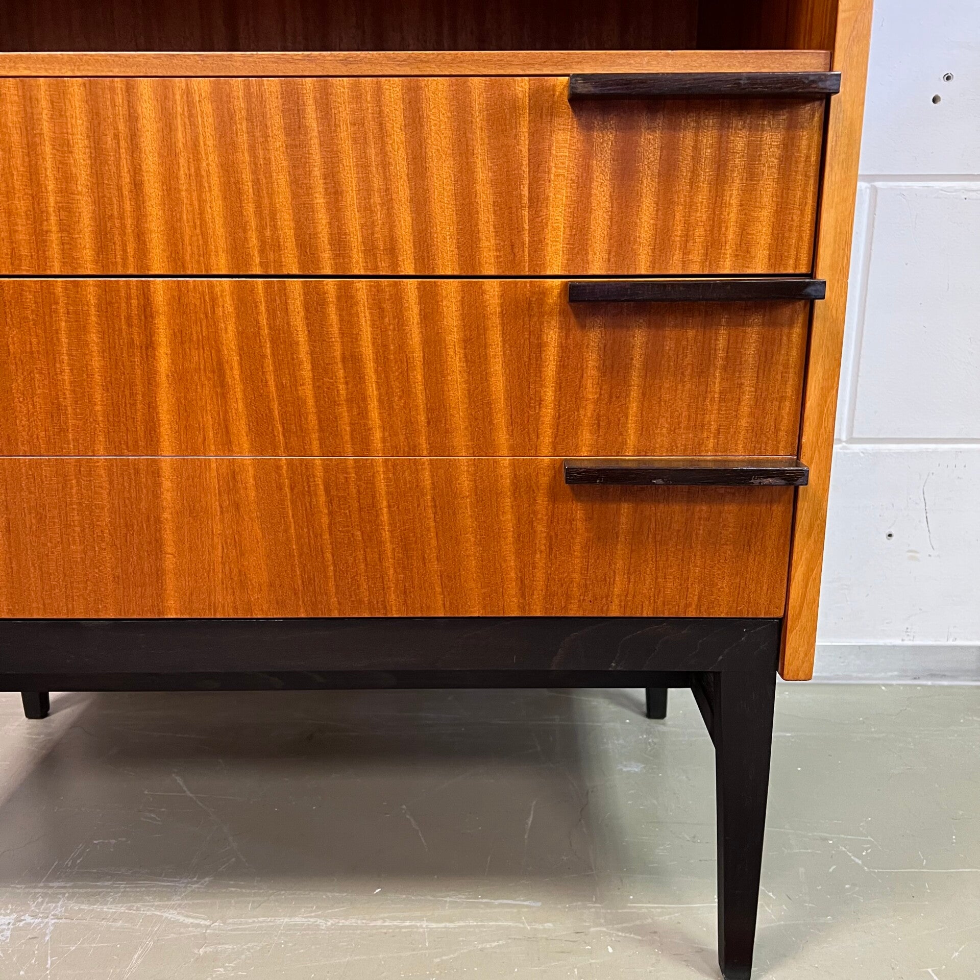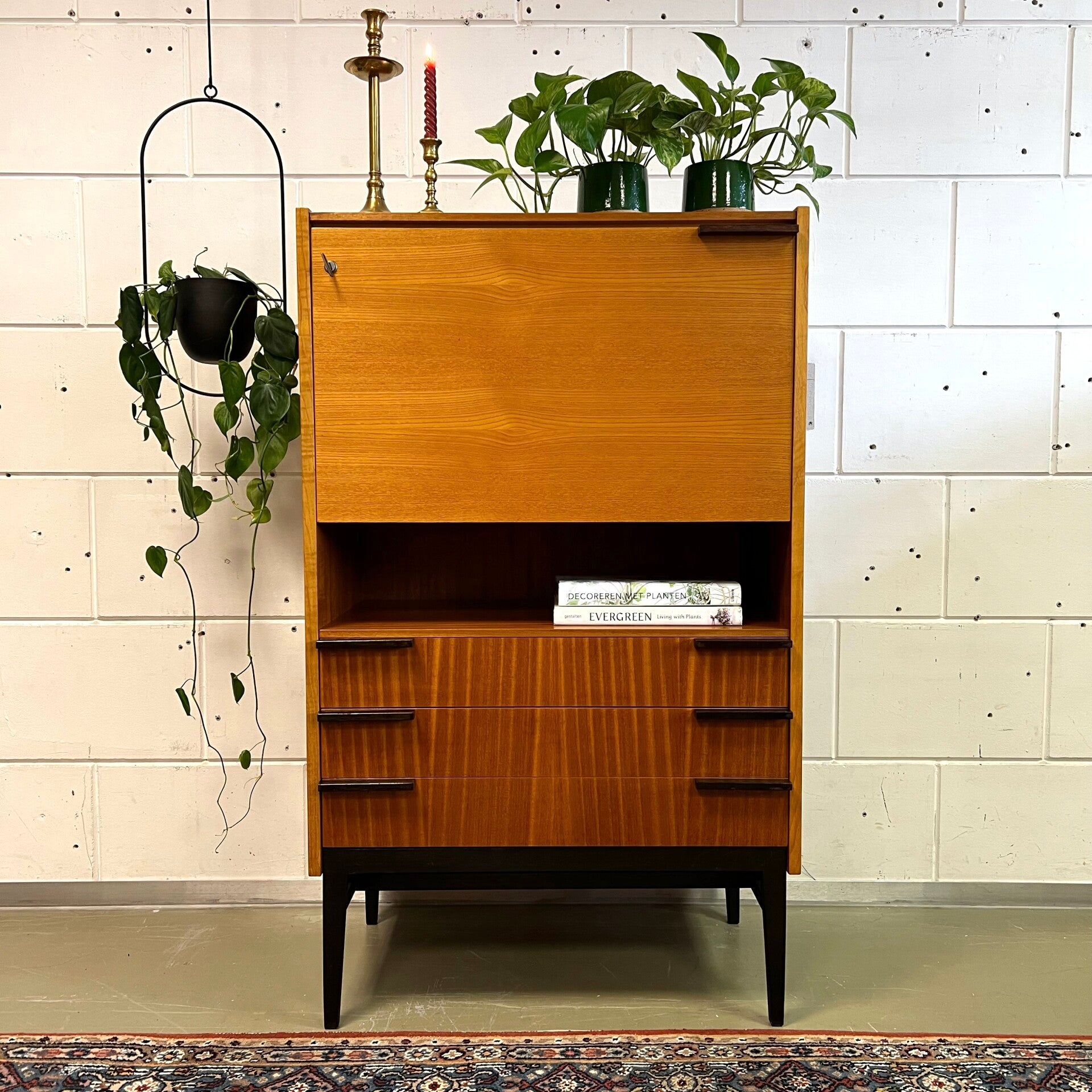 Mooie vintage secretaire of klepkast, uitgevoerd in essenhout/mahoniehout (fineer).