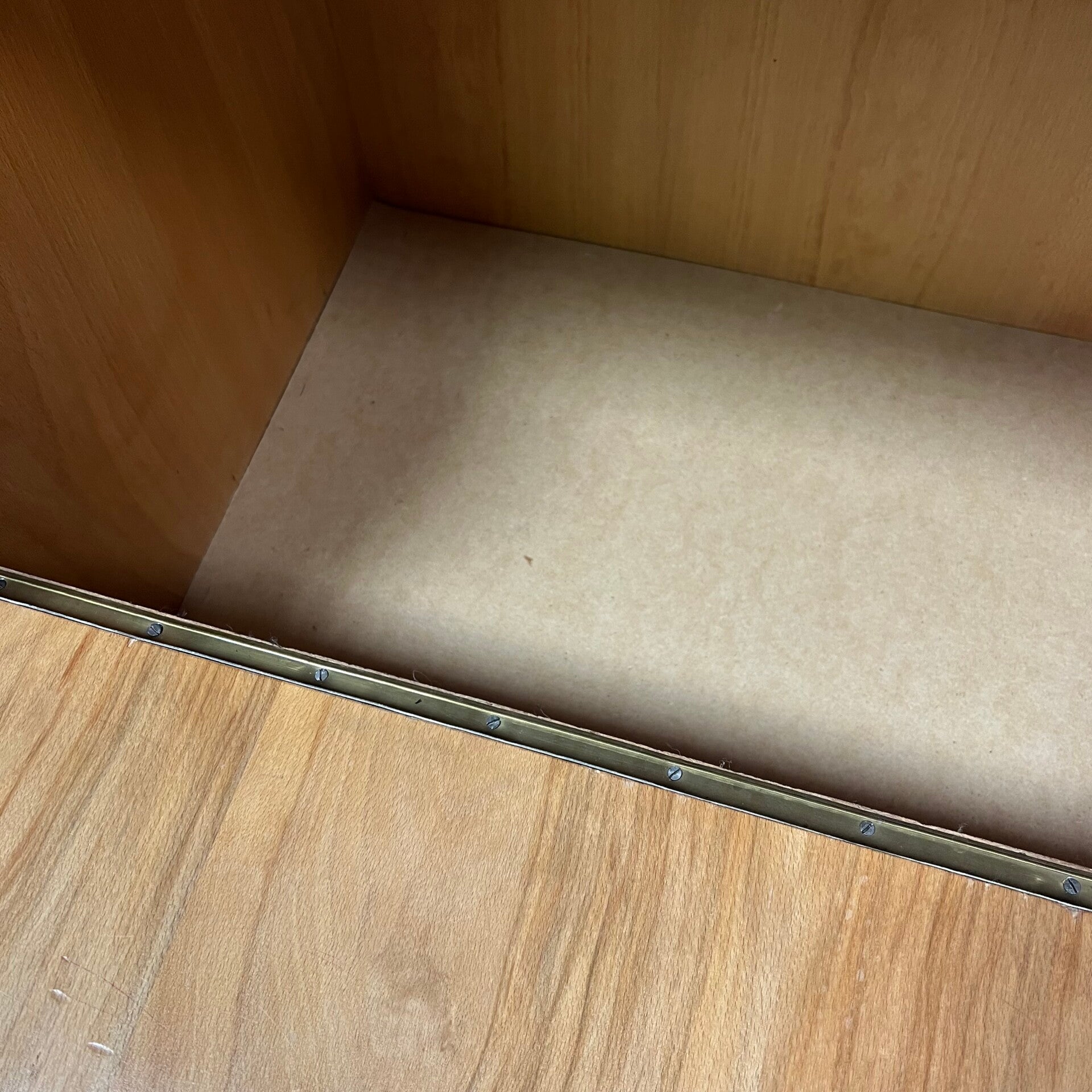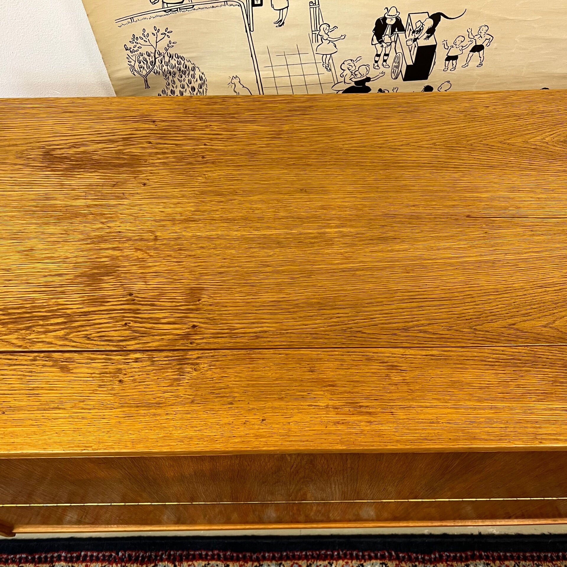 Het meubel heeft een klep met open ruimte, oorspronkelijk gebruikt als dekenkist voor het opbergen van beddengoed en linnen.